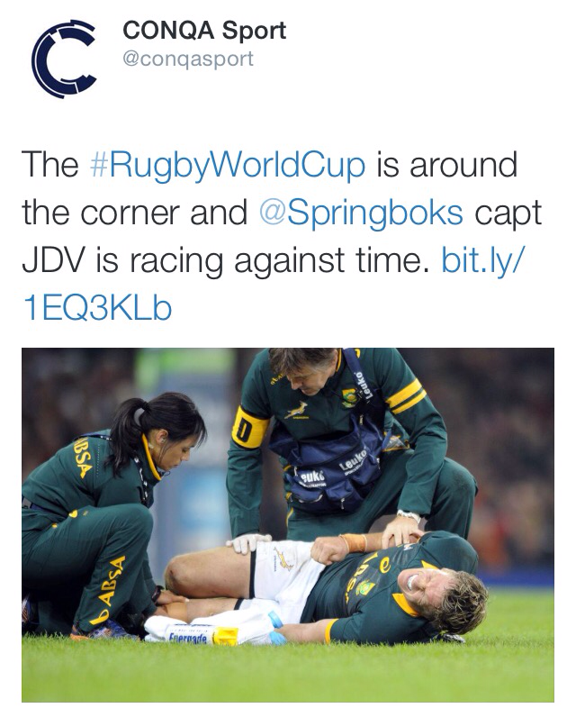 The guys at Conqasport have another good challenging article, this time of the mindset around injury and the rehabilitation process. Specifically they also look at Springbok captain, Jean De Villiers who is fighting against time.