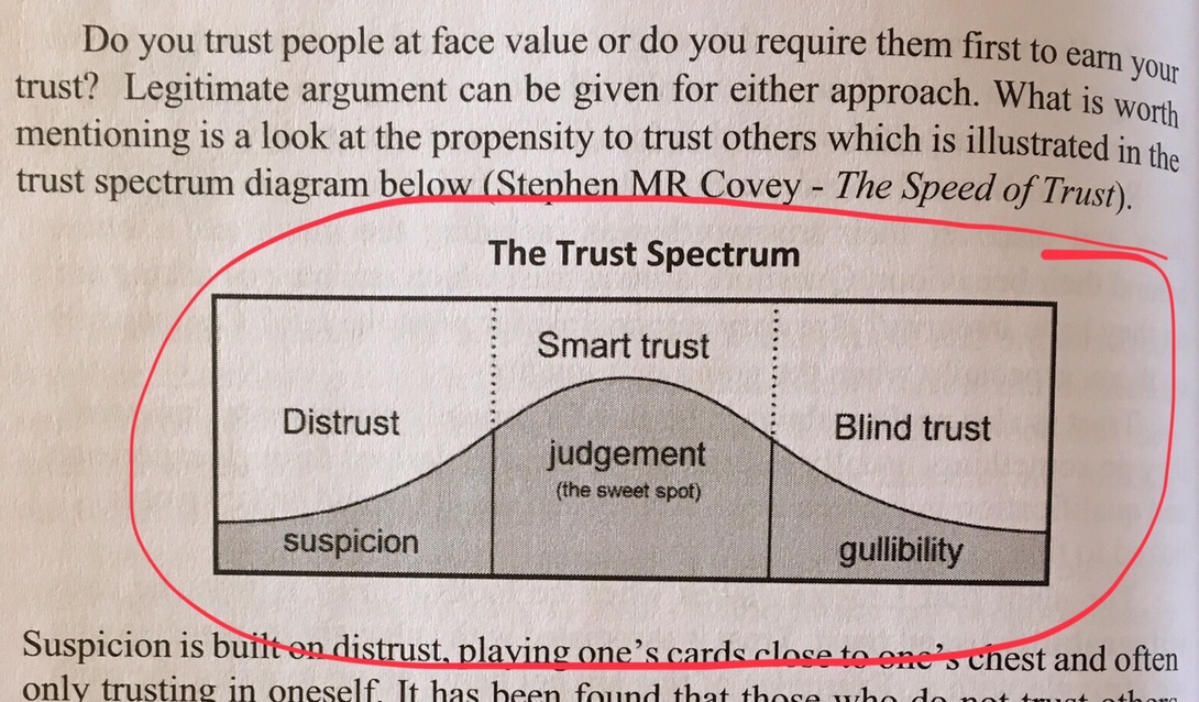 I read this in a book I am reading by Tim Shaw, titled Leading self and others, where he mentioned this below in talking about trust and a trust spectrum