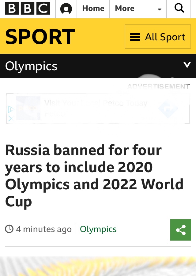 So it’s official. WADA have formerly banned Russia from competing as a nation in all major sporting events for a 4 year period.